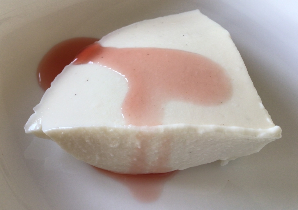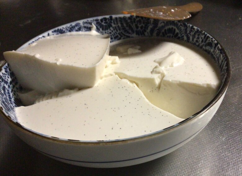 ④容器に入れて(濾し器を使って入れると、より滑らかになります)、余熱を取ってから、ラップなどで蓋をして、冷蔵庫で6時間ほど冷やし固めれば完成です。